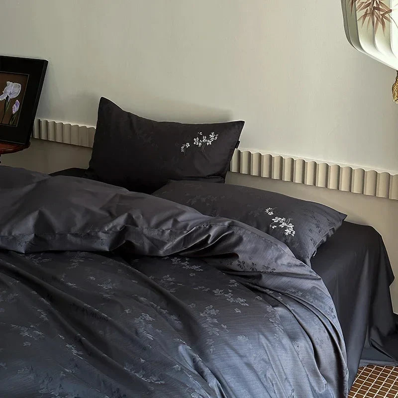 Our duvet cover set includes a duvet cover, two pillowcases, and a flat sheet, all meticulously constructed with a fabric weight of 300gsm for a cozy and premium feel. The intricate embroidered detailing adds a touch of sophistication, elevating the overall look of your bedding ensemble.