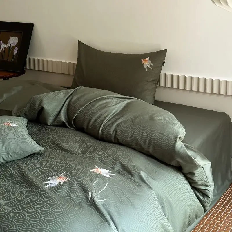 DecorBites™ Chinese Style 100% Cotton Jacquard Duvet Cover Set - Luxury Queen Bedding