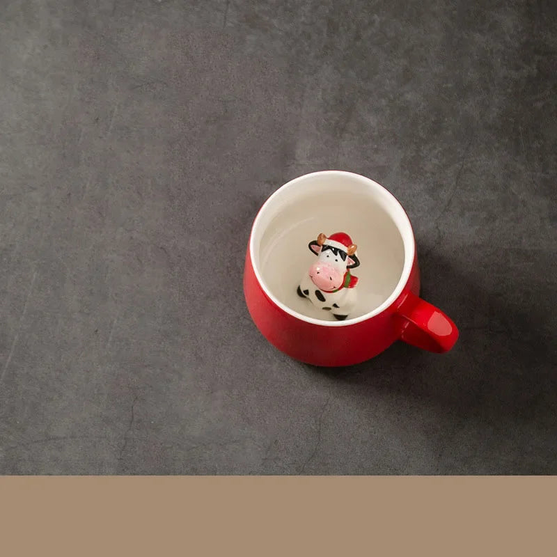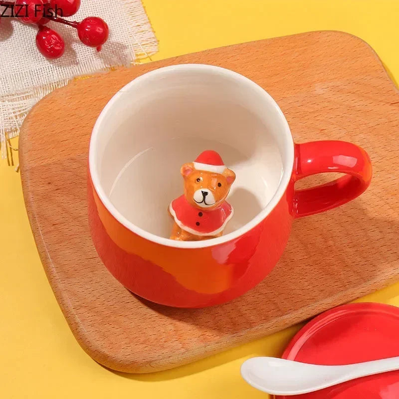 DecorBites™ Christmas Animals Ceramic Tea Cup Set Red Porcelain Mugs