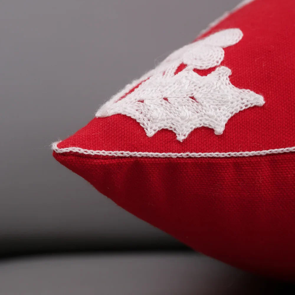 DecorBites™ Christmas Décor Cushion Cover 45x45cm Snowflake Deer Green Red Embroidery Pillow Cover