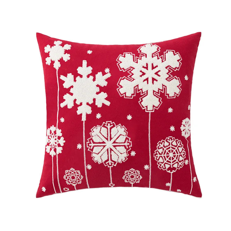 DecorBites™ Christmas Embroidered Cushion Cover 45x45cm - Red Green Santa Snowflake Deer Snowman