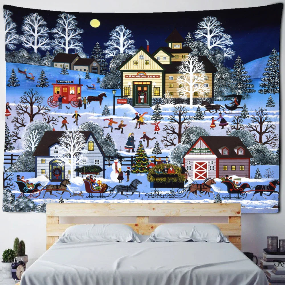 The intricate woven technics create a visually stunning piece that is sure to be a focal point in your home. The rectangular shape makes it easy to hang above your fireplace or on any wall for a festive touch. Whether you're hosting a holiday gathering or simply want to add seasonal flair to your decor, this tapestry is the perfect choice.