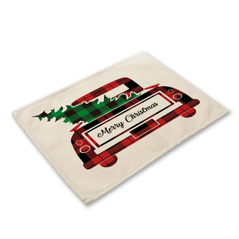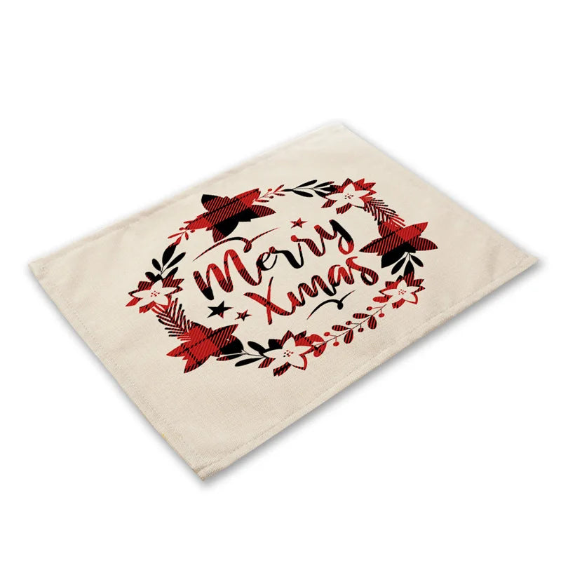 DecorBites™ Christmas Linen Dining Table Mats - Festive Home Decor with Santa Claus Print