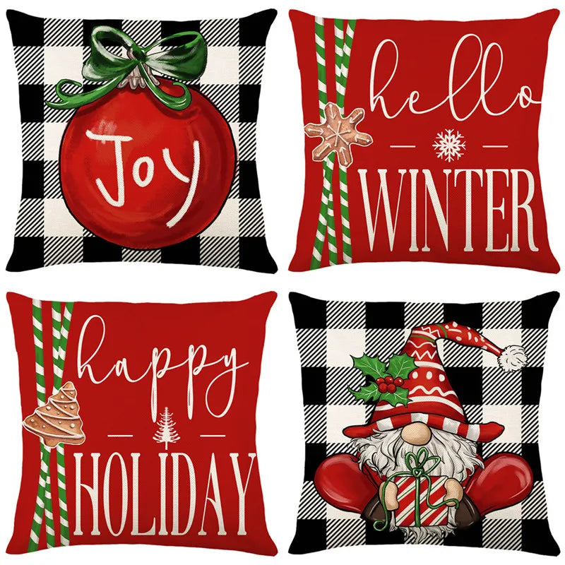 DecorBites™ Christmas Santa Claus Linen Pillowcase - Sofa Cushion Cover, Decorative Living Room Pillow Cover