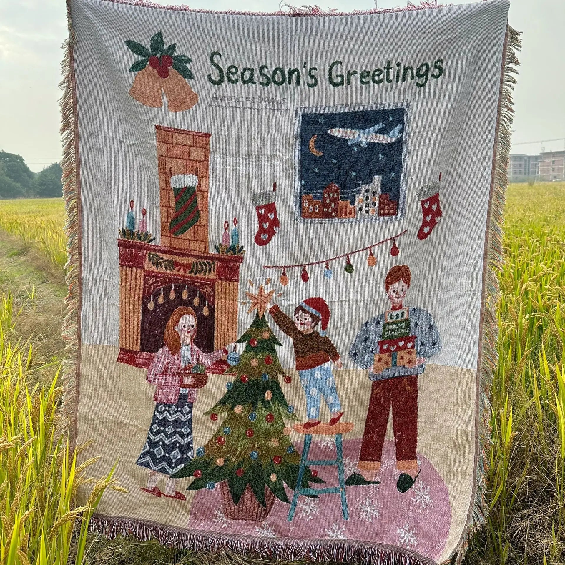 Embrace the festive spirit with this high-quality thread blanket, featuring a classic American style that is perfect for adults. The soft and wearable fabric will keep you comfortable whether you're snuggled up on the couch or using it for a holiday picnic or travel adventure.