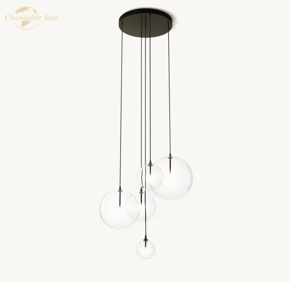 DecorBites™ Clear Glass Globe Cluster Chandeliers Pendant Lights for Living Room and Staircase