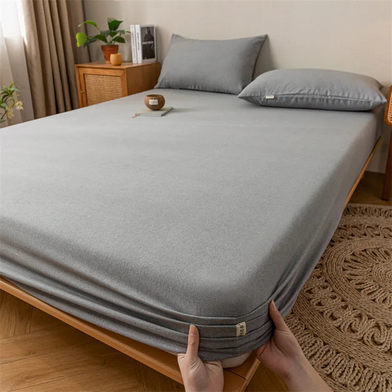 Experience the luxury of Decorbites Coarse Cloth Pure Cotton Queen Fitted Sheet Set with Pillowcases, designed to elevate your sleeping experience to new heights.