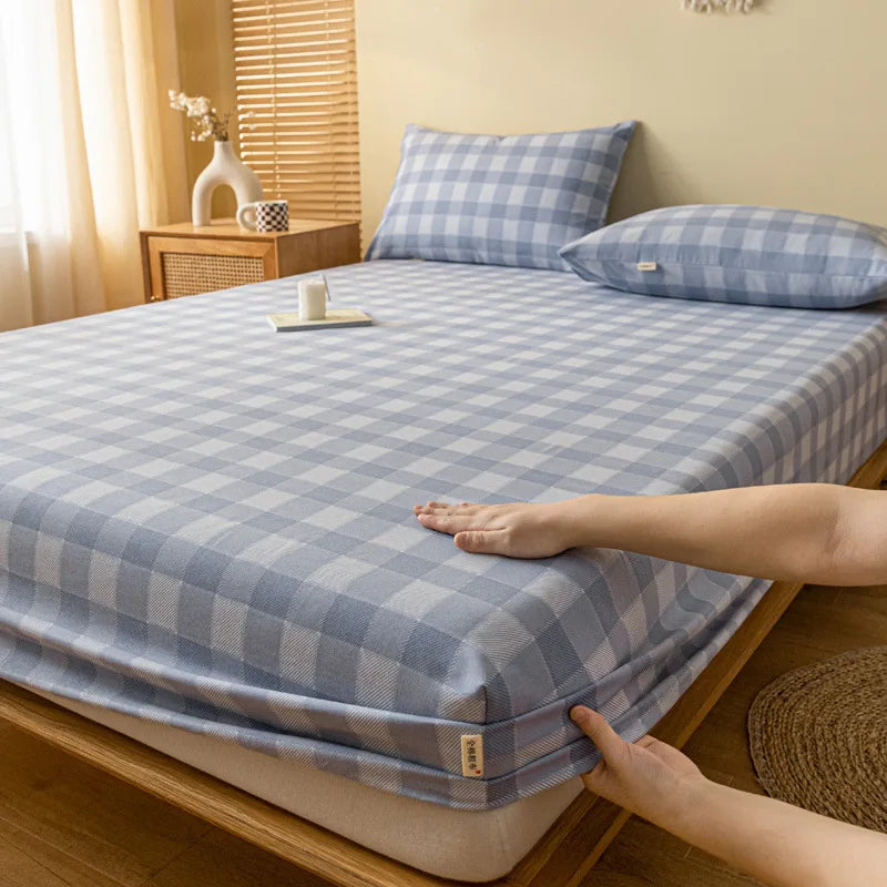 The plaid pattern adds a touch of sophistication to your bedroom decor, while the plain dyed finish exudes a timeless elegance. With a thread count of ≥600s and a fabric count of 80, this Grade A sheet set guarantees a superior level of softness and luxury.