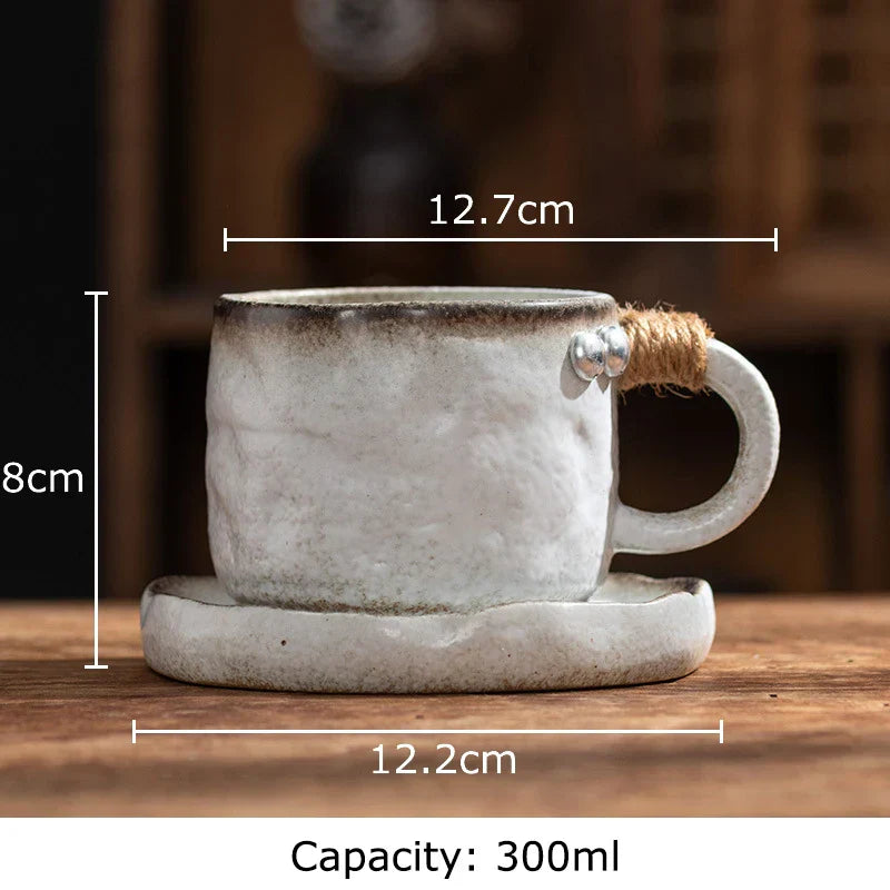 DecorBites™ Coarse Pottery Cup & Saucer Set - Classical Mugs for Dining Table or Coffee