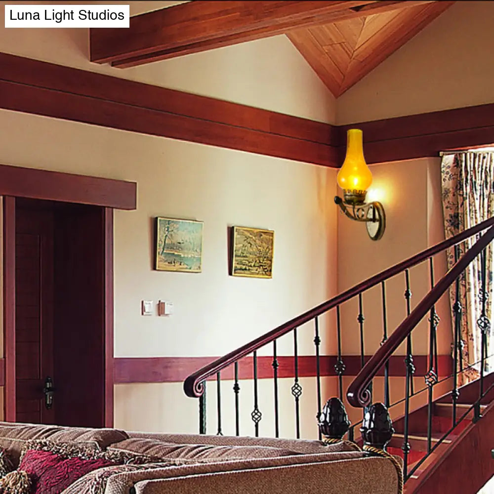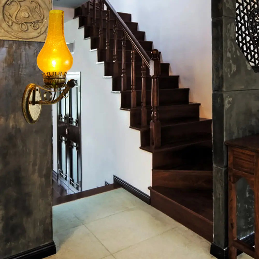 DecorBites™ Coastal Candle Wall Sconce Light - Yellow Crackle Glass, Bronze Finish