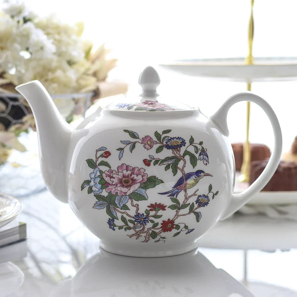 Crafted with attention to detail, each piece in the set boasts a unique design featuring intricate floral patterns. The set includes a cup, saucer, pot, milk jar, sugar container, plate, and tray - everything you need for a perfect tea time.