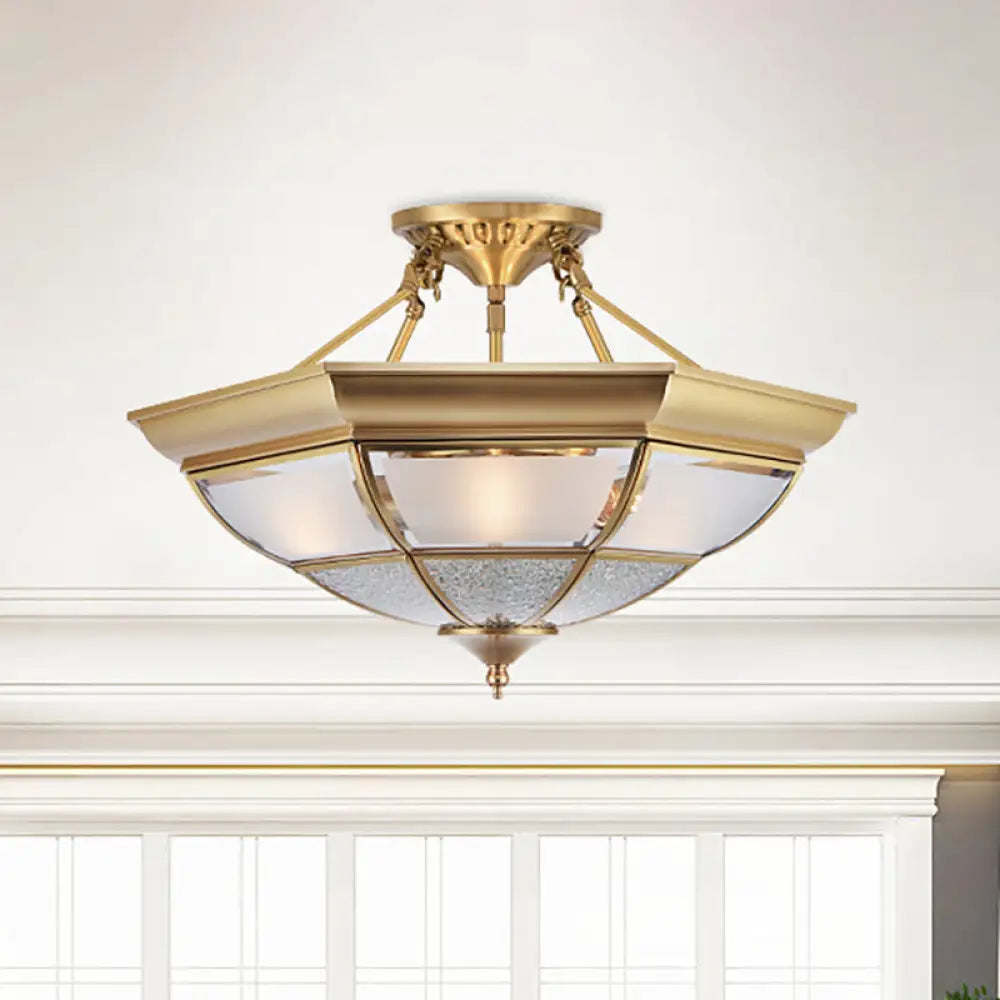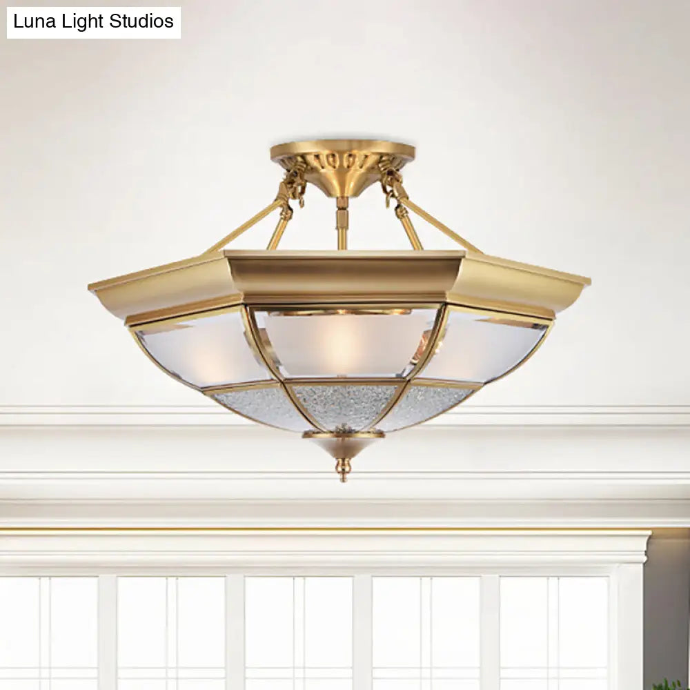 DecorBites™ Colonial Brass Semi-Flush Ceiling Light with 3/4 White Glass, 16"/19.5" Width for Living Room