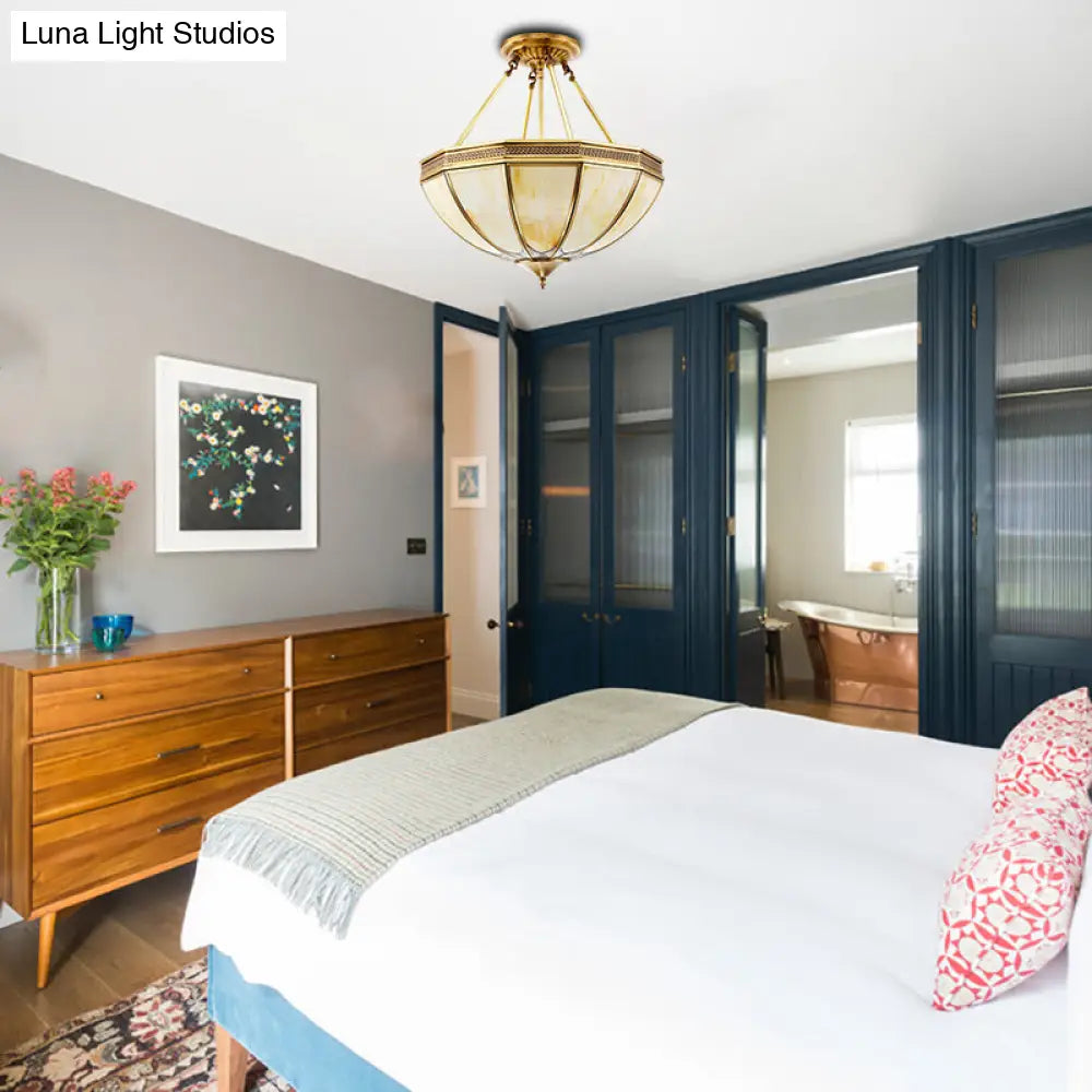 DecorBites™ Colonial Brass Semi Flush Ceiling Light with Sandblasted Glass Bowl - 14"/18" for Living Room