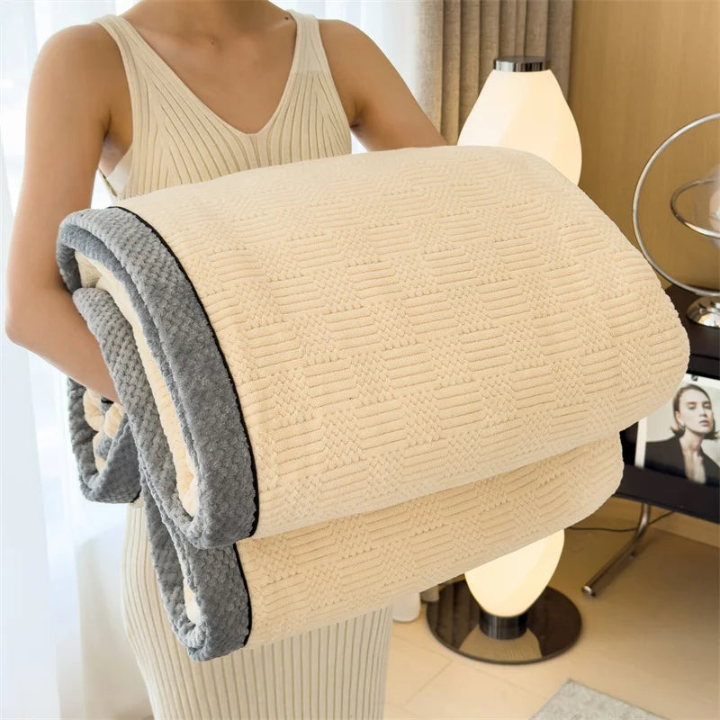 DecorBites™ Cozy Carved Velvet Blanket | Warm, Soft & Breathable | Autumn Winter Sofa Bed Throw