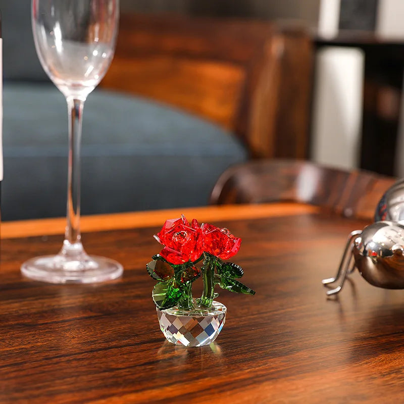 DecorBites™ Crystal Rose Flower Dreams Glass Paperweight Bouquet Sculpture
