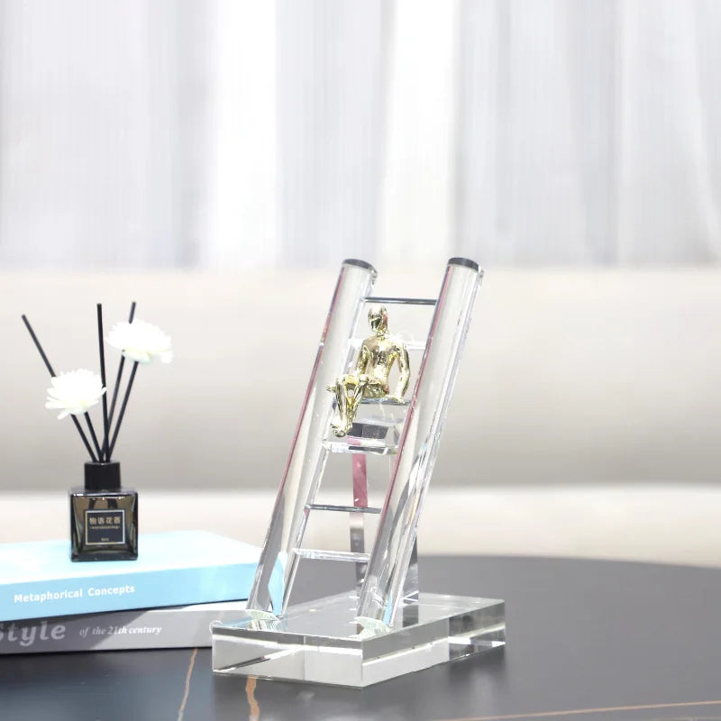 DecorBites™ Crystal Staircase Statue: Golden Man Climbing Handicrafts Glass Home Decor