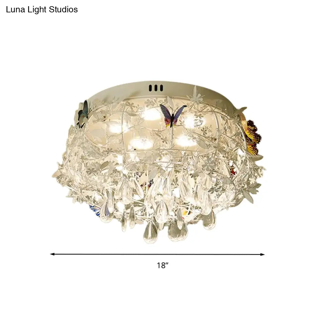 DecorBites™ DecorBites™ Cascade Teardrop Crystal Ceiling Light - 18"/23.5" Wide, Contemporary 5 Heads, Nickel Flush Mount