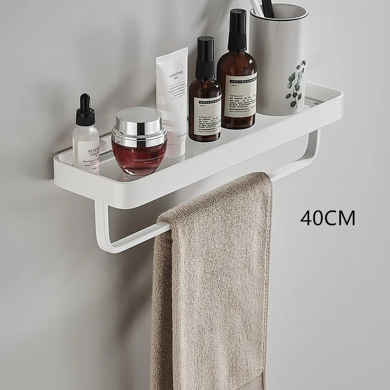 Designed to maximize space, this shelf is perfect for storing bathroom essentials or displaying decorative items. The glass shelf material adds a touch of sophistication, while the bar allows for hanging towels or other items.