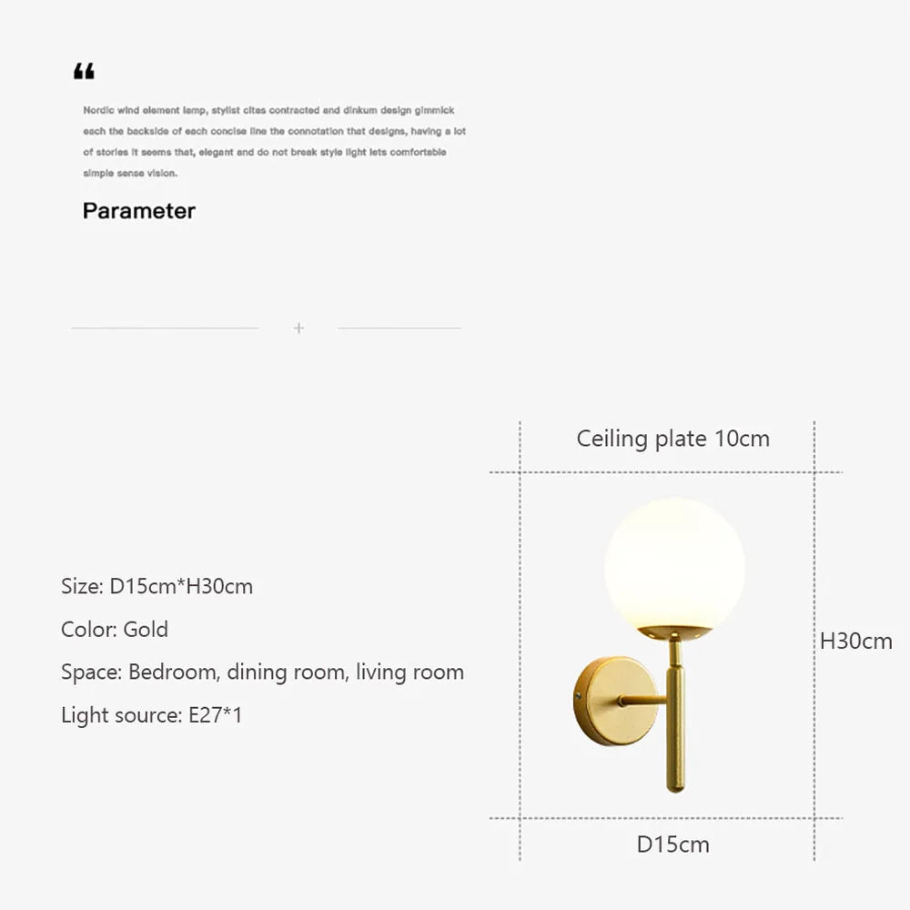 Introducing the Glass Shade Gold Wall Lamp, a luxurious addition to any bedroom, creating a warm and inviting atmosphere. This exquisite bedside lamp features a spherical design that adds a touch of elegance to your space.