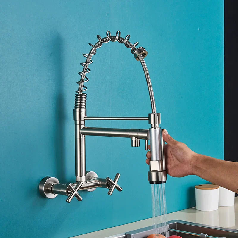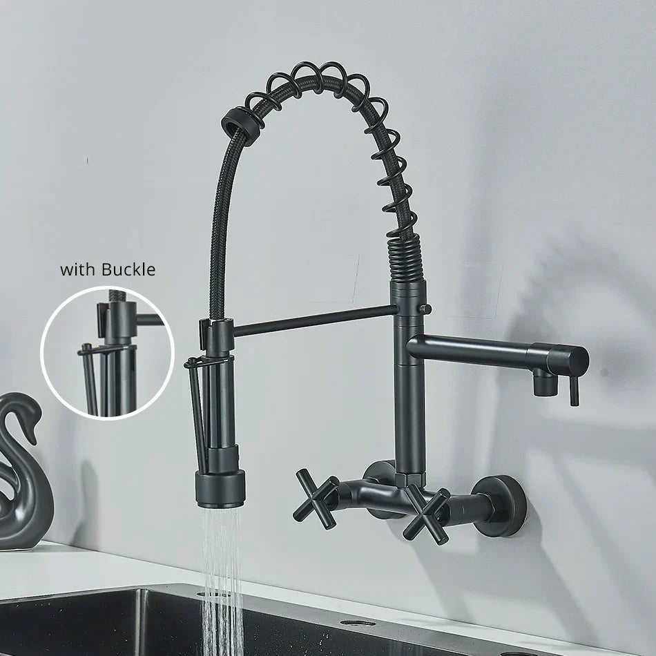 DecorBites™ Gold Black Kitchen Faucet Wall Mount Pull Down Tap Dual Swivel Spouts