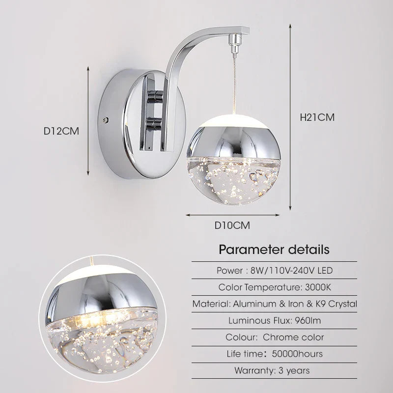 Backed by a 3-year warranty, you can trust in the quality and durability of this wall sconce. Whether you choose the gold or silver finish, this stunning fixture is sure to make a statement in any room. Enhance your living space with the Gold Crystal Bubble Wall Sconce Light and bring a touch of luxury into your home.