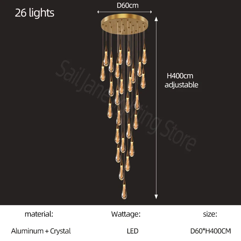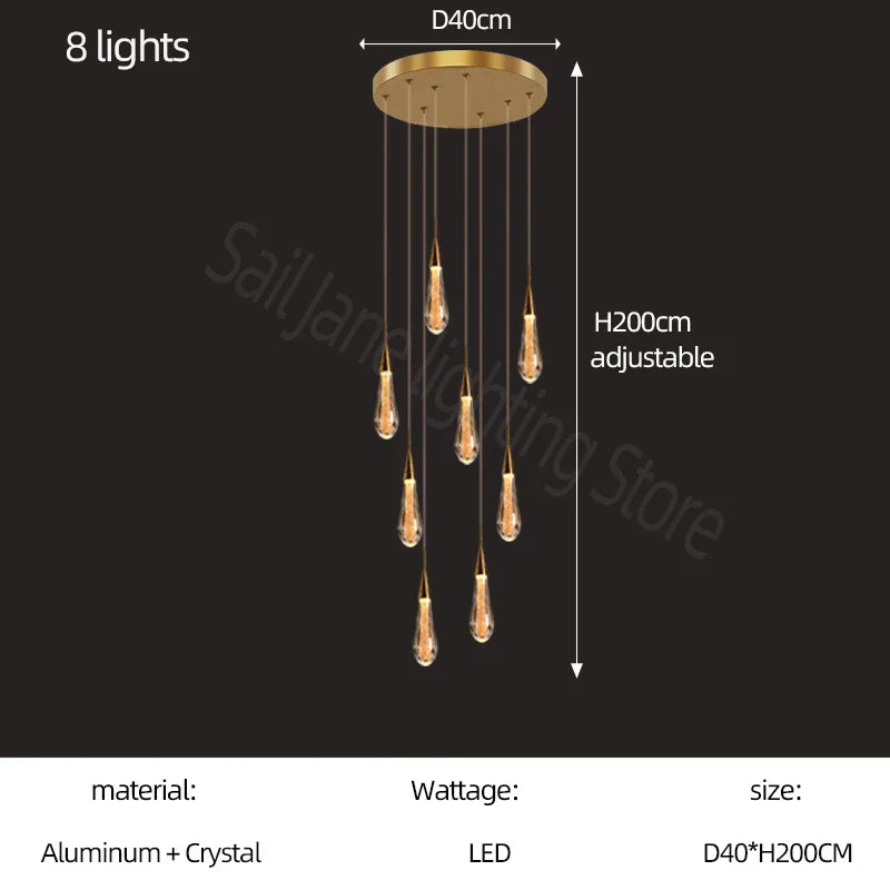 Introducing the Gold Crystal Chandelier, a stunning piece designed for modern living, dining, and stair lighting. This exquisite chandelier is crafted with attention to detail and quality to elevate any space it adorns.