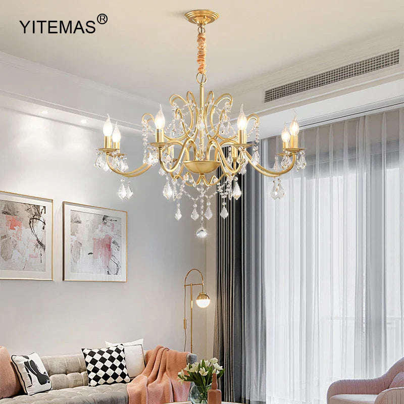 Crafted with high-quality materials, this chandelier boasts a beautiful gold finish that adds a touch of glamour to your decor. The crystal accents sparkle and shine, creating a mesmerizing display of light and color. Whether placed in the living room, bedroom, or kitchen, this chandelier is sure to make a statement.
