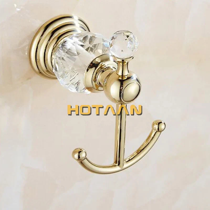 Bring a touch of elegance to your bathroom with the Gold Crystal Robe Hook Towel Rack. Upgrade your space with this stylish and functional accessory that adds a luxurious touch to your daily routine.