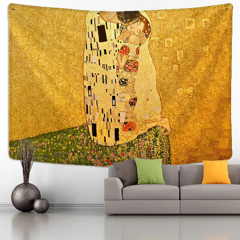 DecorBites™ Gold Kiss Oil Painting Tapestry Wall Hanging Art Blanket