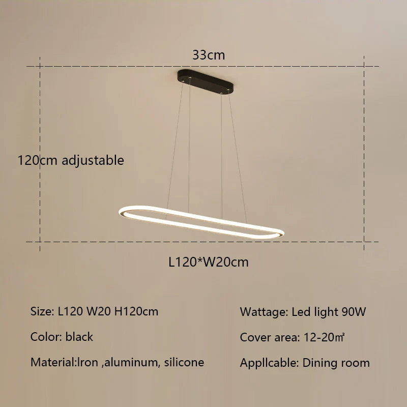 Crafted with high-quality aluminum material and finished in a sleek black iron hue, this Oval LED Chandelier adds a touch of luxury to any space. The unique oval shape and upward and downward light direction create a captivating visual effect, making it a statement piece in your home decor.