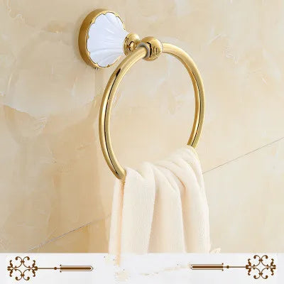 Introducing the luxurious Gold & White Bathroom Accessories Set, designed to elevate your bathroom decor to new heights of sophistication and style. Crafted from high-quality copper, this exquisite set exudes elegance and glamour, making it the perfect addition to any modern bathroom.