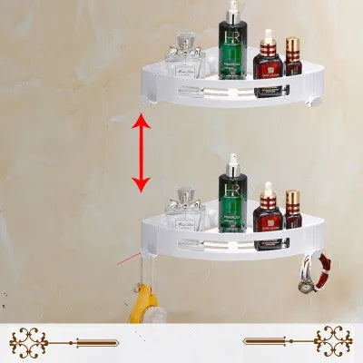 DecorBites™ Gold & White Bathroom Accessories Set: Corner Shelf, Paper Holder, Towel Holder, Toilet Brush Holder, Towel Rack