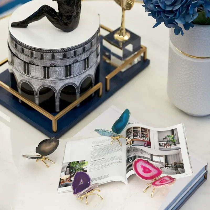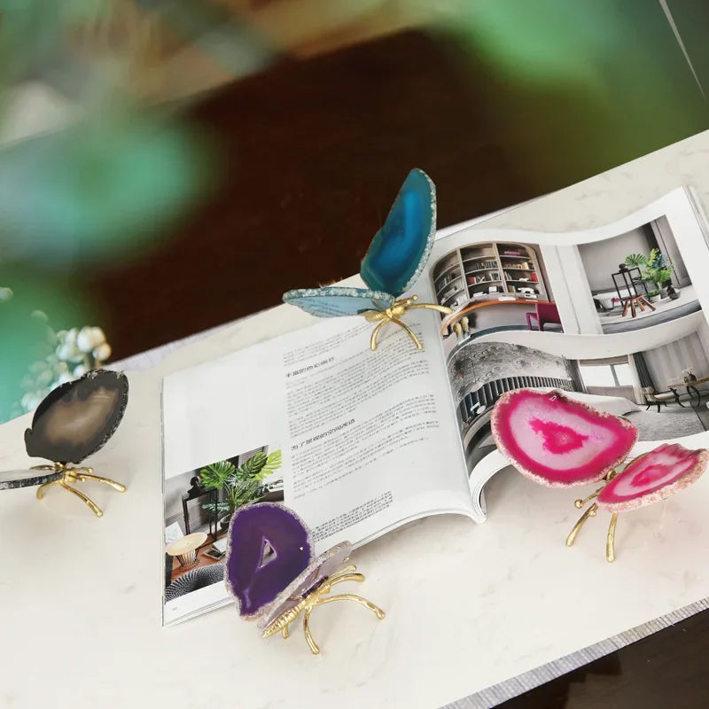 DecorBites™ Golden Crystal Agate Butterfly Sculpture Decorative Figurines