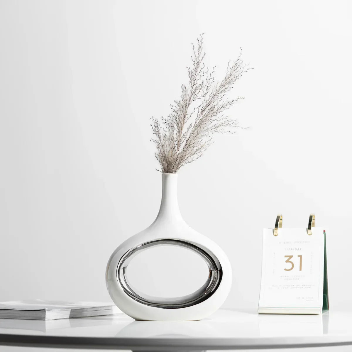 Introducing the Golden Flower Vase, a stunning piece designed for both home decoration and flower arrangement. Crafted from high-quality ceramic & porcelain, this tabletop vase exudes modern style and elegance.