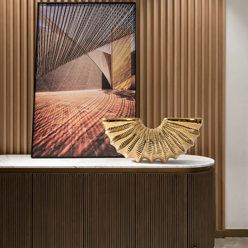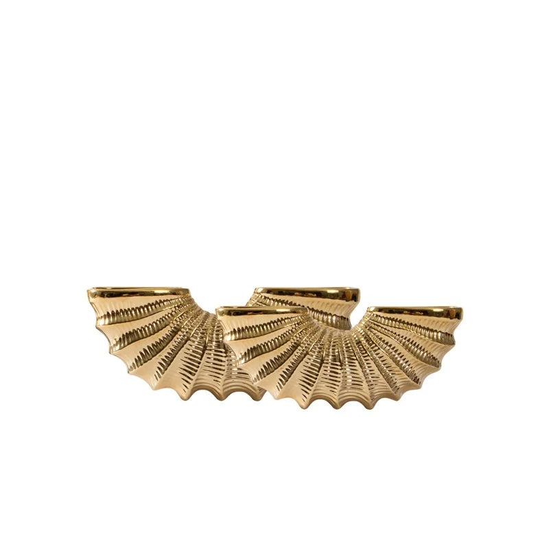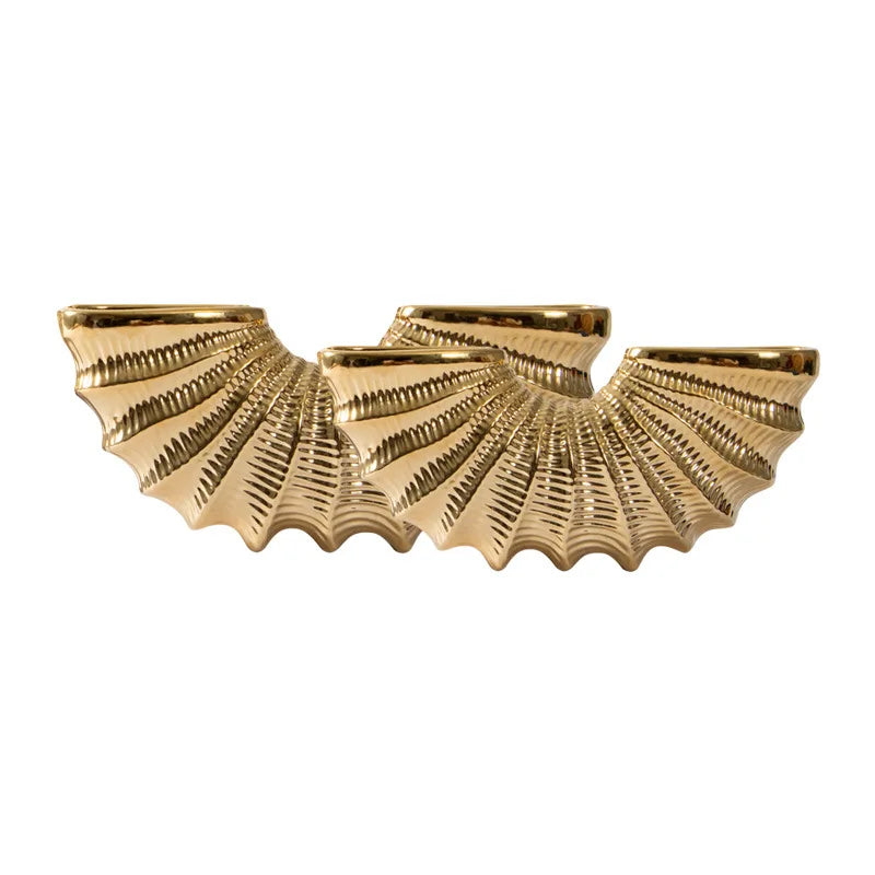 DecorBites™ Golden Shell Ceramic Vase | Geometric Design | Living Room Decoration