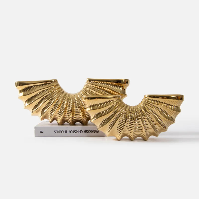 Introducing the Golden Shell Ceramic Vase, a stunning piece designed to elevate your living room decor effortlessly. Crafted with high-quality ceramic and enamel, this geometric masterpiece brings a touch of artistry to any space.