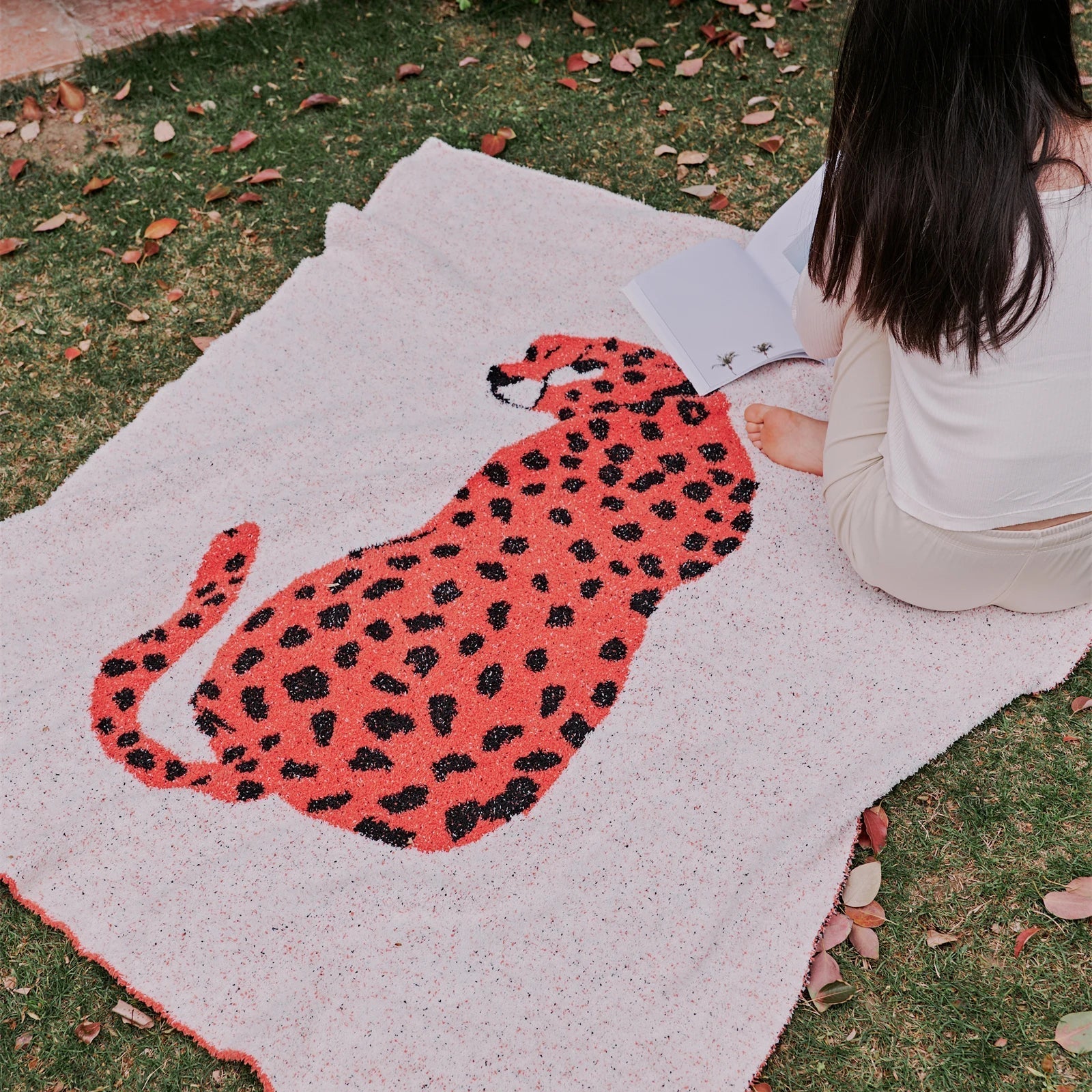 Embrace the spirit of adventure with this Grade A quality jacquard blanket. Its vibrant yellow and red leopard pattern adds a touch of exotic flair to any room. Whether you're cuddled up on the couch, enjoying a leisurely TV session, or taking a cozy nap, this blanket is the perfect companion.
