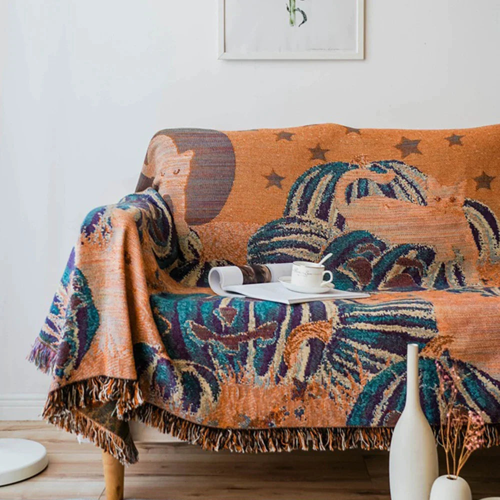 This rectangular blanket is perfect for adults, featuring a jacquard design that adds a touch of elegance to any room. The blanket is not only portable but also wearable, making it ideal for picnics, travel, or simply snuggling up at home.