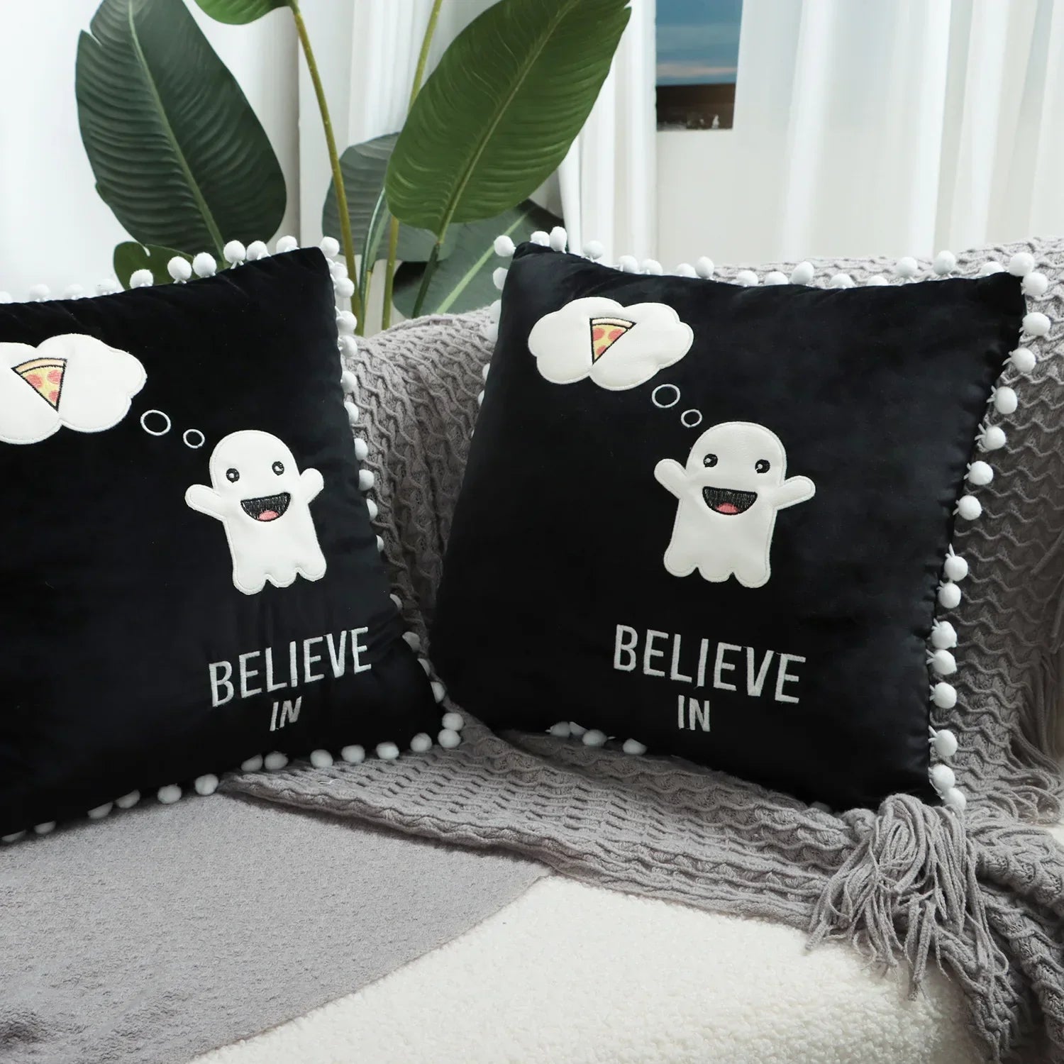 DecorBites™ Halloween Ghost Patchwork Pillow Cover - Decorative Embroidered Cushion Cover