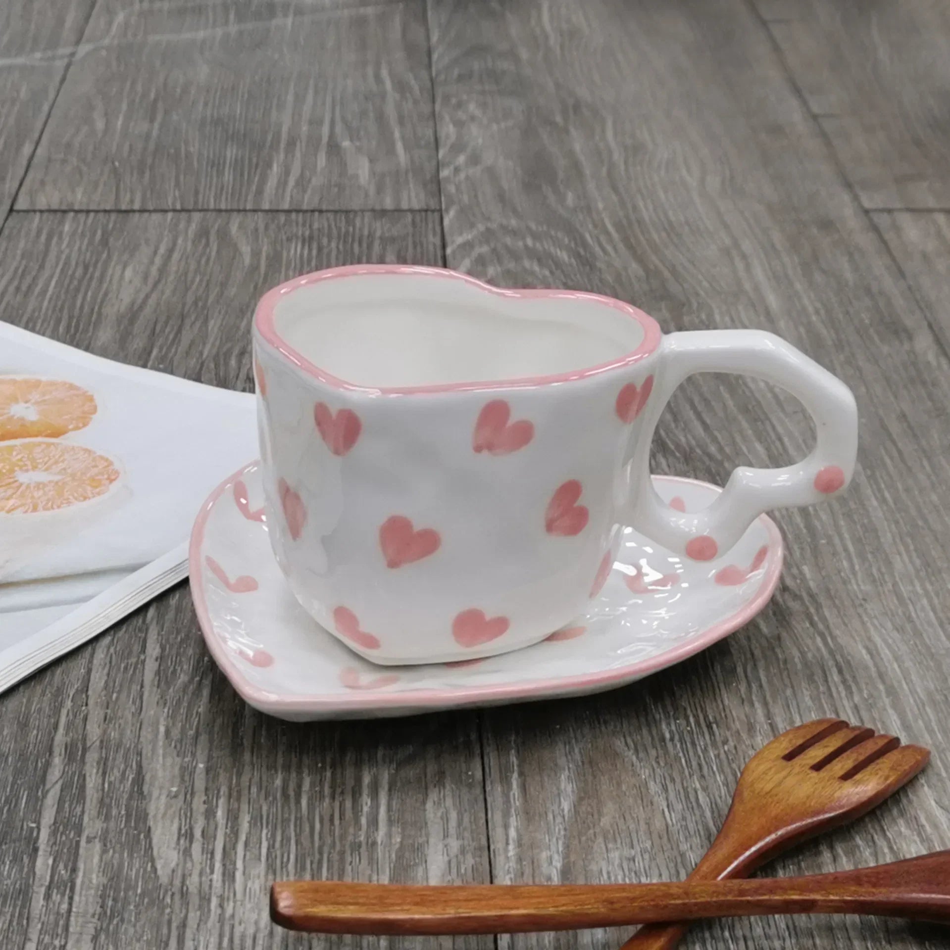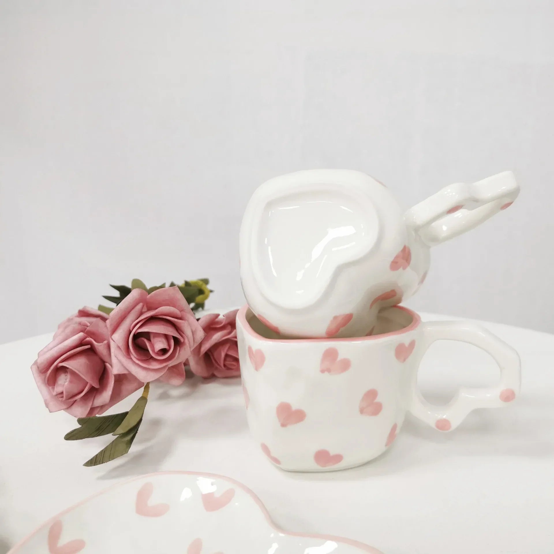 DecorBites™ Hand Painted Heart Handle Ceramic Love Mug - Pink