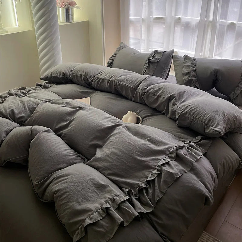 DecorBites™ Korean Princess Ruffles Bedding Set - Soft Microfiber, Duvet Cover Pillowcases - All Sizes