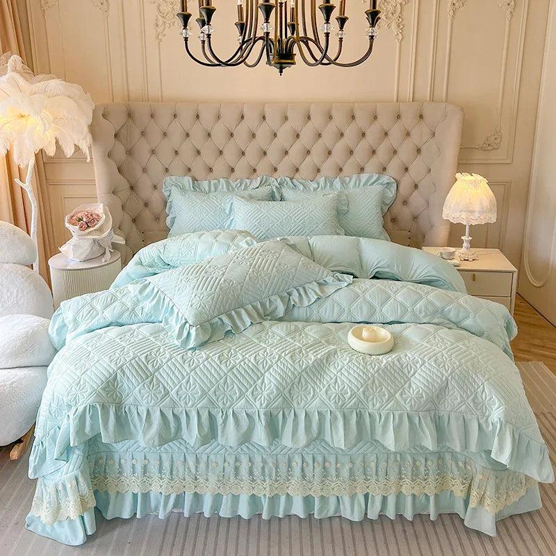 DecorBites™ Korean Princess Style Quilted Bedding Set with Lace Ruffles 200x230cm