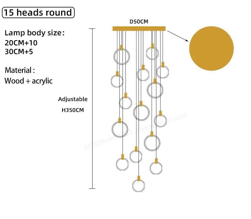 Illuminate your living space with the Decorbites LED Wooden Staircase Chandelier Ceiling Lights. Crafted with a modern design, these pendant lamps add a touch of elegance to any room. The wooden lighting fixtures create a warm and inviting atmosphere, perfect for the parlor, study, master bedroom, other bedrooms, hotel hall, or hotel room.