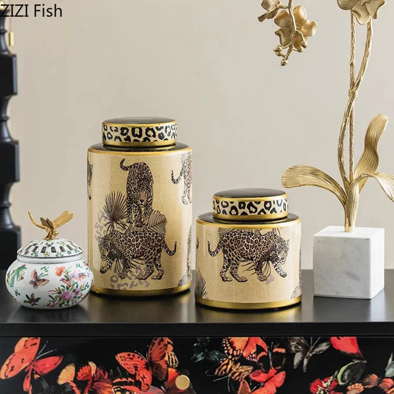 DecorBites™ Leopard Pattern Tank Ceramic Storage Jar with Lid for Jewelry and Cosmetics
