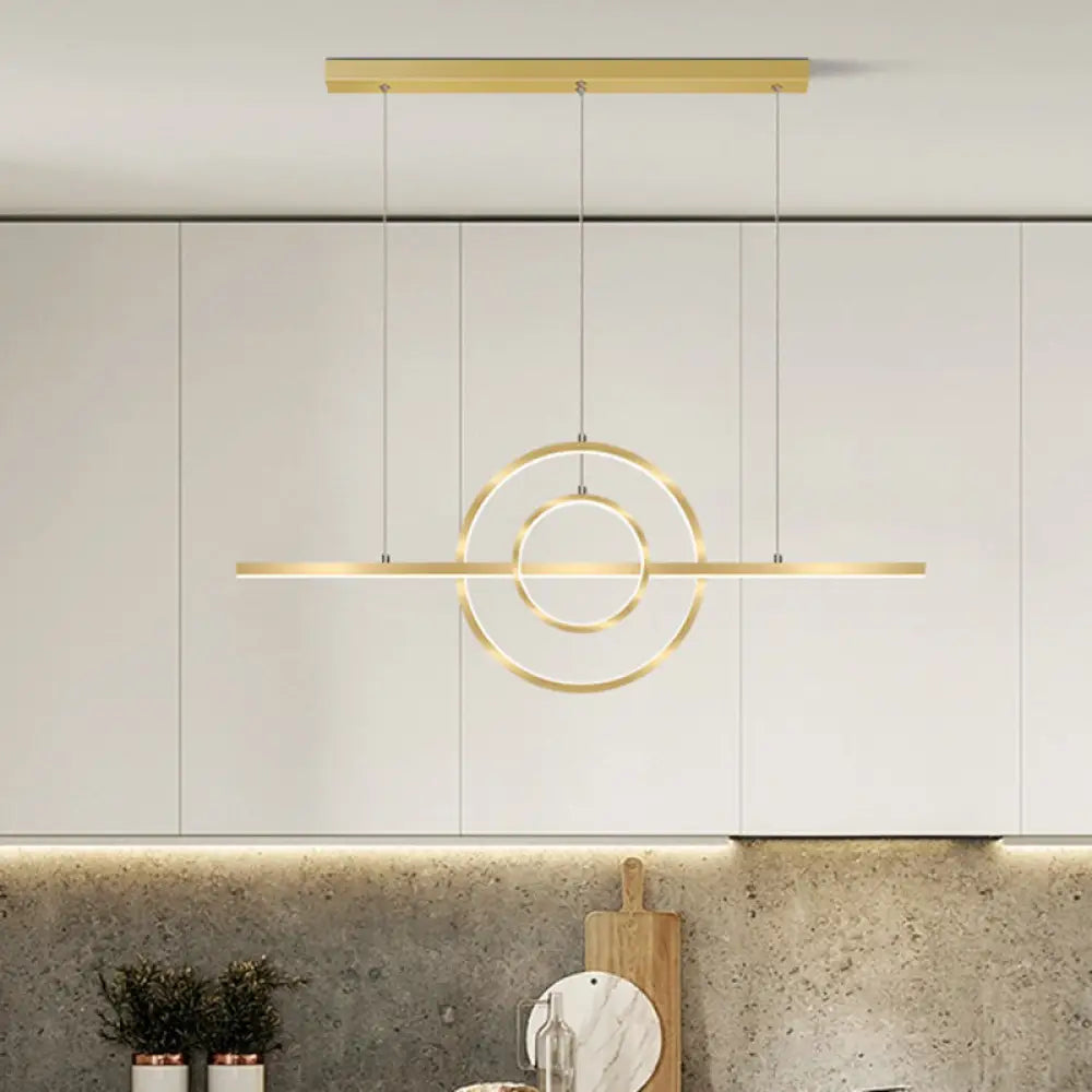 DecorBites™ Modern Gold 2-Ring LED Island Pendant Lamp with Warm/White Light - Perfect for Dining Room