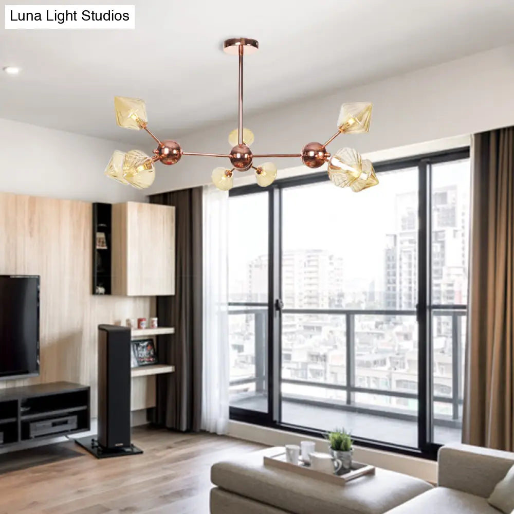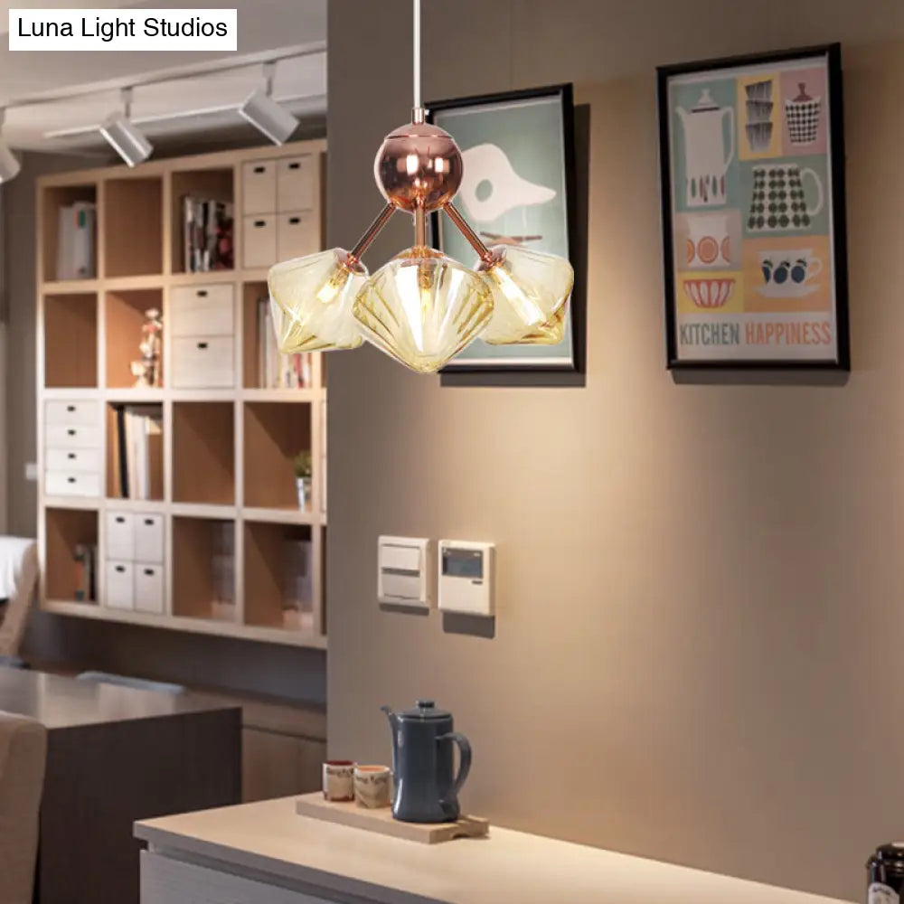 Farmhouse Style Diamond Chandelier: Amber/Clear Glass, Multiple Light Options, 13"/27.5"/34" Wide