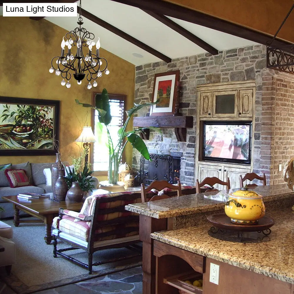 Vintage Style Metal Chandelier Lamp - Elegant 5-Light Suspension Light with Clear Crystal Ball - Black Finish for Dining Room
