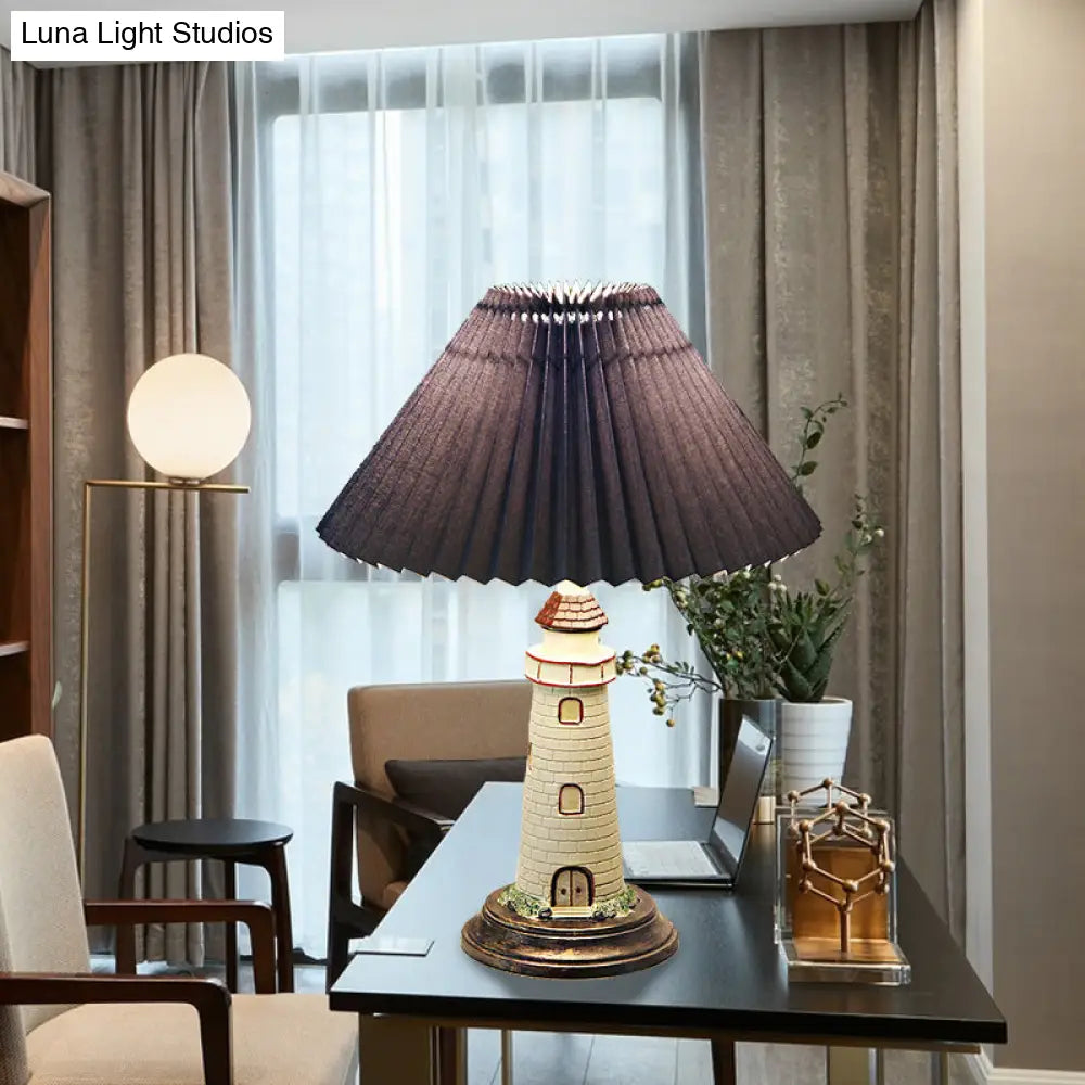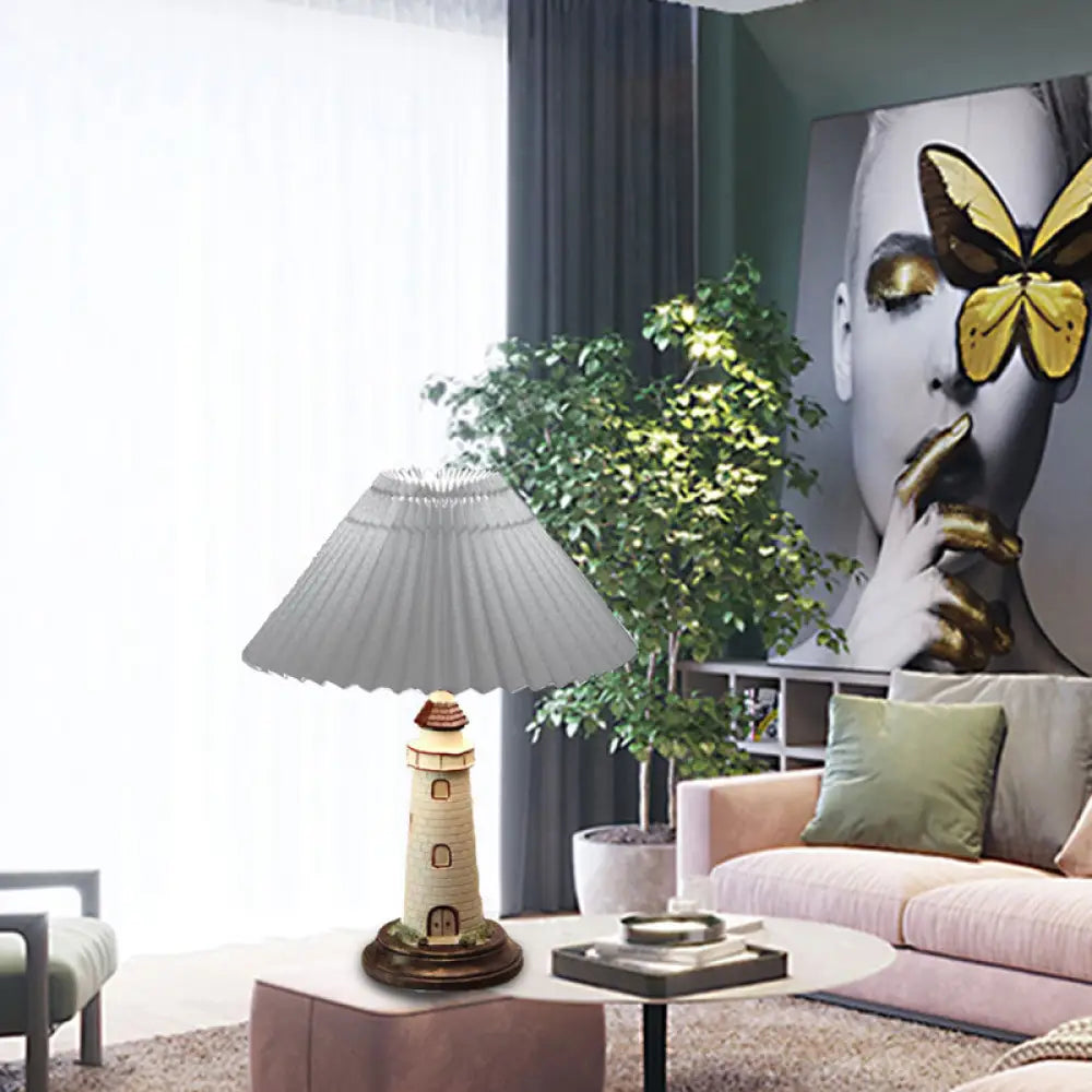 Contemporary Foldable Conical Table Lamp for Children's Room - 1-Light Blue/Red Fabric Shade with Resin Tower Base