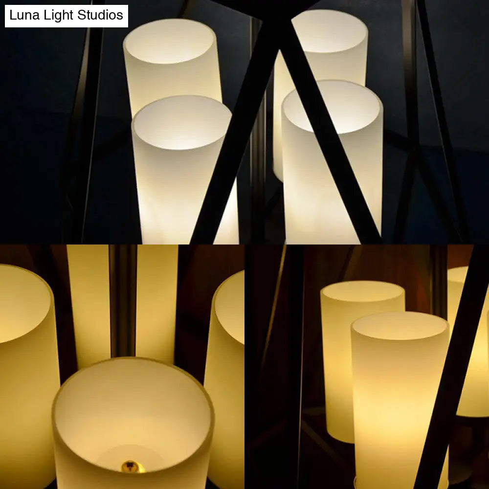 Geometric Opal Glass Dining Room Pendant Chandelier | Industrial Black Hanging Fixture with Cage | 3/4 Light
