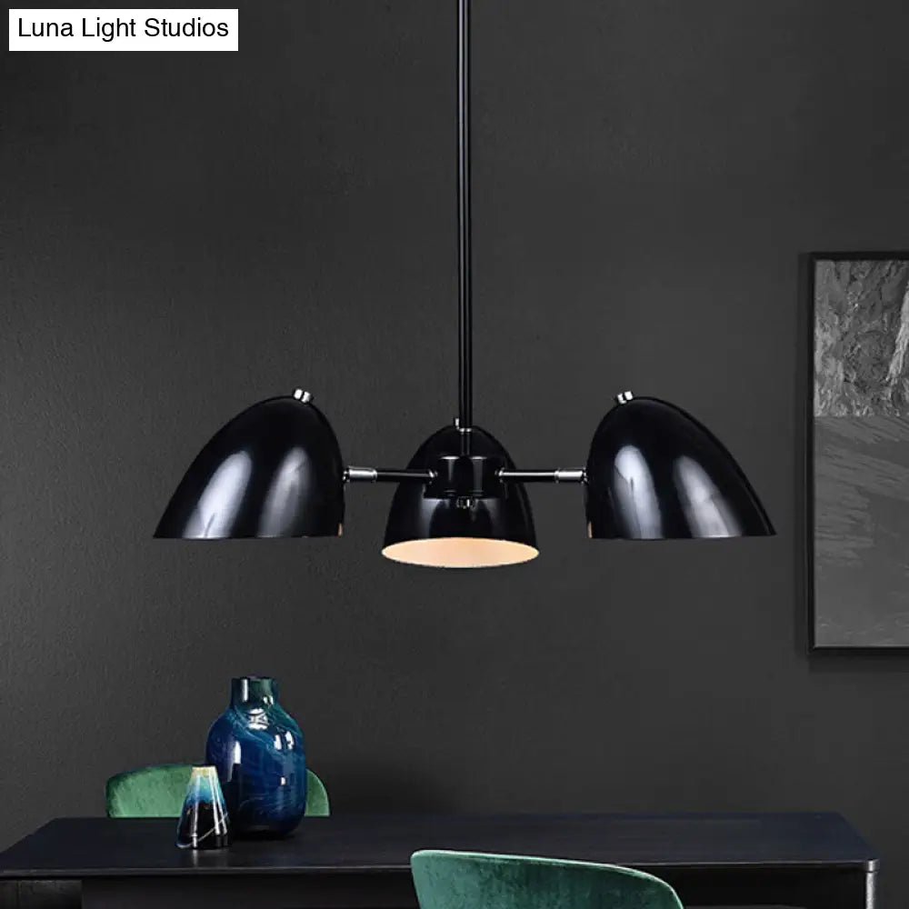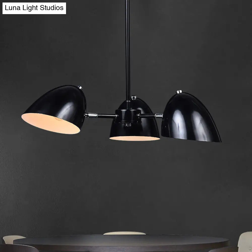 Industrial Iron Dome Angled Shade Chandelier with 3-Head Dining Table Suspension Lighting - Black
